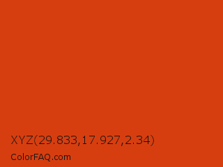 XYZ 29.833,17.927,2.34 Color is a normal red color and the nearest color is Sinopia #cb410b. Hex code #d73e0f and RGB value is rgb(215,62,15). In RGB color space, this color is composed of 84% red, 24% green, 6% blue, In CMYK color space, this color is composed of 0% cyan, 71% magenta, 93% yellow , 16% black , In HSL color space, this color has a hue angle of 14° , 87% saturation and 45% lightness.