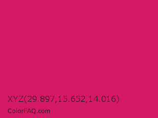 XYZ 29.897,15.652,14.016 Color is a normal rose color and the nearest color is Dogwood Rose #d71868. Hex code #d41966 and RGB value is rgb(212,25,102). In RGB color space, this color is composed of 83% red, 10% green, 40% blue, In CMYK color space, this color is composed of 0% cyan, 88% magenta, 52% yellow , 17% black , In HSL color space, this color has a hue angle of 335° , 79% saturation and 46% lightness.