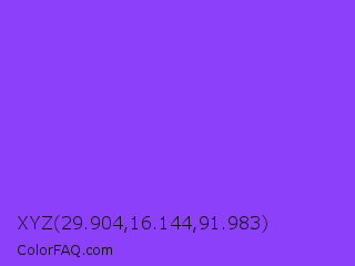 XYZ 29.904,16.144,91.983 Color is a light violet color and the nearest color is Navy Purple #9457eb. Hex code #8c40fa and RGB value is rgb(140,64,250). In RGB color space, this color is composed of 55% red, 25% green, 98% blue, In CMYK color space, this color is composed of 44% cyan, 74% magenta, 0% yellow , 2% black , In HSL color space, this color has a hue angle of 265° , 95% saturation and 62% lightness.