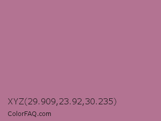 XYZ 29.909,23.92,30.235 Color is a normal rose color and the nearest color is English Lavender #b48395. Hex code #b37392 and RGB value is rgb(179,115,146). In RGB color space, this color is composed of 70% red, 45% green, 57% blue, In CMYK color space, this color is composed of 0% cyan, 36% magenta, 18% yellow , 30% black , In HSL color space, this color has a hue angle of 331° , 30% saturation and 58% lightness.