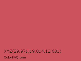 XYZ 29.971,19.814,12.601 Color is a normal red color and the nearest color is Dark Terra Cotta #cc4e5c. Hex code #cc535d and RGB value is rgb(204,83,93). In RGB color space, this color is composed of 80% red, 33% green, 36% blue, In CMYK color space, this color is composed of 0% cyan, 59% magenta, 54% yellow , 20% black , In HSL color space, this color has a hue angle of 355° , 54% saturation and 56% lightness.