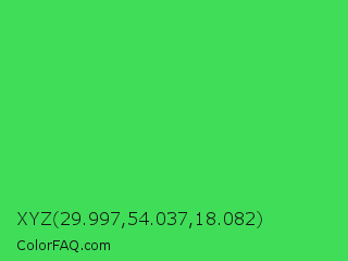 XYZ 29.997,54.037,18.082 Color is a normal green color and the nearest color is UFO Green #3cd070. Hex code #40de58 and RGB value is rgb(64,222,88). In RGB color space, this color is composed of 25% red, 87% green, 35% blue, In CMYK color space, this color is composed of 71% cyan, 0% magenta, 60% yellow , 13% black , In HSL color space, this color has a hue angle of 129° , 71% saturation and 56% lightness.