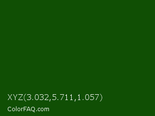 XYZ 3.032,5.711,1.057 Color is a very dark green color and the nearest color is Dark Fern #0a480d. Hex code #104f04 and RGB value is rgb(16,79,4). In RGB color space, this color is composed of 6% red, 31% green, 2% blue, In CMYK color space, this color is composed of 80% cyan, 0% magenta, 95% yellow , 69% black , In HSL color space, this color has a hue angle of 110° , 90% saturation and 16% lightness.