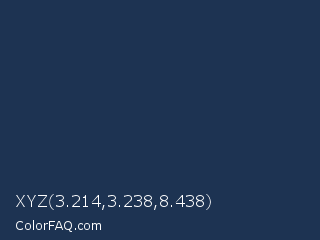 XYZ 3.214,3.238,8.438 Color is a very dark blue color and the nearest color is Nile Blue #193751. Hex code #1d3352 and RGB value is rgb(29,51,82). In RGB color space, this color is composed of 11% red, 20% green, 32% blue, In CMYK color space, this color is composed of 65% cyan, 38% magenta, 0% yellow , 68% black , In HSL color space, this color has a hue angle of 215° , 48% saturation and 22% lightness.