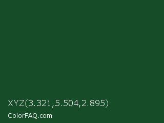XYZ 3.321,5.504,2.895 Color is a very dark green color and the nearest color is Cal Poly Pomona Green #1e4d2b. Hex code #174c28 and RGB value is rgb(23,76,40). In RGB color space, this color is composed of 9% red, 30% green, 16% blue, In CMYK color space, this color is composed of 70% cyan, 0% magenta, 47% yellow , 70% black , In HSL color space, this color has a hue angle of 139° , 54% saturation and 19% lightness.