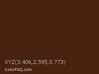 XYZ 3.406,2.595,0.773 Color is a very dark orange color and the nearest color is Brown Derby #492615. Hex code #49220f and RGB value is rgb(73,34,15). In RGB color space, this color is composed of 29% red, 13% green, 6% blue, In CMYK color space, this color is composed of 0% cyan, 53% magenta, 79% yellow , 71% black , In HSL color space, this color has a hue angle of 20° , 66% saturation and 17% lightness.
