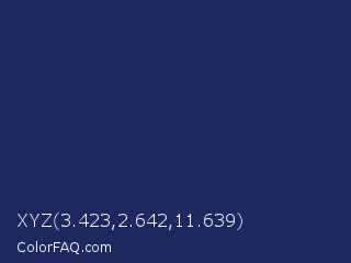 XYZ 3.423,2.642,11.639 Color is a dark blue color and the nearest color is Biscay #1b3162. Hex code #1d2861 and RGB value is rgb(29,40,97). In RGB color space, this color is composed of 11% red, 16% green, 38% blue, In CMYK color space, this color is composed of 70% cyan, 59% magenta, 0% yellow , 62% black , In HSL color space, this color has a hue angle of 230° , 54% saturation and 25% lightness.