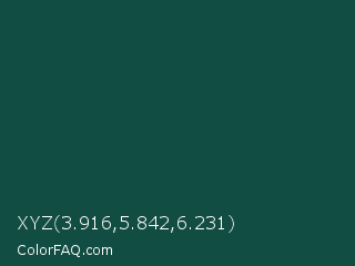 XYZ 3.916,5.842,6.231 Color is a very dark cyan color and the nearest color is Brunswick Green #1b4d3e. Hex code #124d43 and RGB value is rgb(18,77,67). In RGB color space, this color is composed of 7% red, 30% green, 26% blue, In CMYK color space, this color is composed of 77% cyan, 0% magenta, 13% yellow , 70% black , In HSL color space, this color has a hue angle of 170° , 62% saturation and 19% lightness.