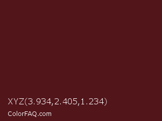 XYZ 3.934,2.405,1.234 Color is a very dark red color and the nearest color is Maroon Oak #520c17. Hex code #52151a and RGB value is rgb(82,21,26). In RGB color space, this color is composed of 32% red, 8% green, 10% blue, In CMYK color space, this color is composed of 0% cyan, 74% magenta, 68% yellow , 68% black , In HSL color space, this color has a hue angle of 355° , 59% saturation and 20% lightness.