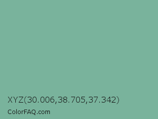 XYZ 30.006,38.705,37.342 Color is a normal green color and the nearest color is Acapulco #7cb0a1. Hex code #79b39c and RGB value is rgb(121,179,156). In RGB color space, this color is composed of 47% red, 70% green, 61% blue, In CMYK color space, this color is composed of 32% cyan, 0% magenta, 13% yellow , 30% black , In HSL color space, this color has a hue angle of 156° , 28% saturation and 59% lightness.