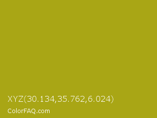 XYZ 30.134,35.762,6.024 Color is a normal yellow color and the nearest color is Lucky #af9f1c. Hex code #a9a615 and RGB value is rgb(169,166,21). In RGB color space, this color is composed of 66% red, 65% green, 8% blue, In CMYK color space, this color is composed of 0% cyan, 2% magenta, 88% yellow , 34% black , In HSL color space, this color has a hue angle of 59° , 78% saturation and 37% lightness.