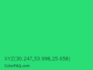 XYZ 30.247,53.998,25.658 Color is a normal green color and the nearest color is UFO Green #3cd070. Hex code #29de75 and RGB value is rgb(41,222,117). In RGB color space, this color is composed of 16% red, 87% green, 46% blue, In CMYK color space, this color is composed of 82% cyan, 0% magenta, 47% yellow , 13% black , In HSL color space, this color has a hue angle of 145° , 73% saturation and 52% lightness.