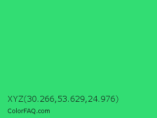 XYZ 30.266,53.629,24.976 Color is a normal green color and the nearest color is UFO Green #3cd070. Hex code #32dd73 and RGB value is rgb(50,221,115). In RGB color space, this color is composed of 20% red, 87% green, 45% blue, In CMYK color space, this color is composed of 77% cyan, 0% magenta, 48% yellow , 13% black , In HSL color space, this color has a hue angle of 143° , 72% saturation and 53% lightness.