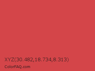 XYZ 30.482,18.734,8.313 Color is a normal red color and the nearest color is English Vermillion #cc474b. Hex code #d44549 and RGB value is rgb(212,69,73). In RGB color space, this color is composed of 83% red, 27% green, 29% blue, In CMYK color space, this color is composed of 0% cyan, 67% magenta, 66% yellow , 17% black , In HSL color space, this color has a hue angle of 358° , 62% saturation and 55% lightness.