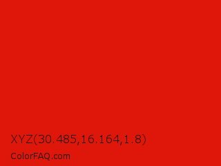 XYZ 30.485,16.164,1.8 Color is a normal red color and the nearest color is Lust #e62020. Hex code #de170a and RGB value is rgb(222,23,10). In RGB color space, this color is composed of 87% red, 9% green, 4% blue, In CMYK color space, this color is composed of 0% cyan, 90% magenta, 95% yellow , 13% black , In HSL color space, this color has a hue angle of 4° , 91% saturation and 45% lightness.