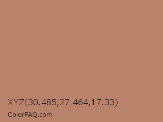 XYZ 30.485,27.464,17.33 Color is a normal orange color and the nearest color is Light Taupe #b38b6d. Hex code #b8836a and RGB value is rgb(184,131,106). In RGB color space, this color is composed of 72% red, 51% green, 42% blue, In CMYK color space, this color is composed of 0% cyan, 29% magenta, 42% yellow , 28% black , In HSL color space, this color has a hue angle of 19° , 35% saturation and 57% lightness.