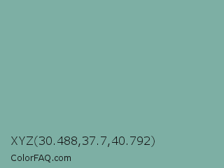 XYZ 30.488,37.7,40.792 Color is a normal cyan color and the nearest color is Acapulco #7cb0a1. Hex code #7dafa4 and RGB value is rgb(125,175,164). In RGB color space, this color is composed of 49% red, 69% green, 64% blue, In CMYK color space, this color is composed of 29% cyan, 0% magenta, 6% yellow , 31% black , In HSL color space, this color has a hue angle of 167° , 24% saturation and 59% lightness.