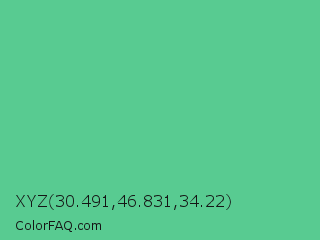 XYZ 30.491,46.831,34.22 Color is a normal green color and the nearest color is Ocean Green #48bf91. Hex code #58cb91 and RGB value is rgb(88,203,145). In RGB color space, this color is composed of 35% red, 80% green, 57% blue, In CMYK color space, this color is composed of 57% cyan, 0% magenta, 29% yellow , 20% black , In HSL color space, this color has a hue angle of 150° , 53% saturation and 57% lightness.