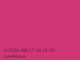 XYZ 30.496,17.24,18.55 Color is a normal rose color and the nearest color is Telemagenta #cf3476. Hex code #d03575 and RGB value is rgb(208,53,117). In RGB color space, this color is composed of 82% red, 21% green, 46% blue, In CMYK color space, this color is composed of 0% cyan, 75% magenta, 44% yellow , 18% black , In HSL color space, this color has a hue angle of 335° , 62% saturation and 51% lightness.