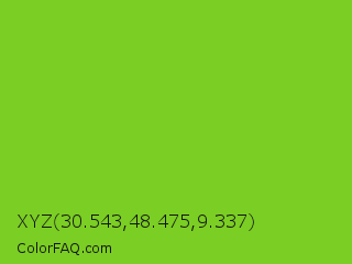XYZ 30.543,48.475,9.337 Color is a normal green color and the nearest color is Lima #76bd17. Hex code #7bce23 and RGB value is rgb(123,206,35). In RGB color space, this color is composed of 48% red, 81% green, 14% blue, In CMYK color space, this color is composed of 40% cyan, 0% magenta, 83% yellow , 19% black , In HSL color space, this color has a hue angle of 89° , 71% saturation and 47% lightness.