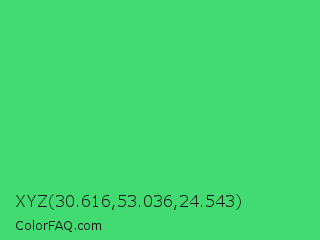 XYZ 30.616,53.036,24.543 Color is a normal green color and the nearest color is UFO Green #3cd070. Hex code #42db72 and RGB value is rgb(66,219,114). In RGB color space, this color is composed of 26% red, 86% green, 45% blue, In CMYK color space, this color is composed of 70% cyan, 0% magenta, 48% yellow , 14% black , In HSL color space, this color has a hue angle of 139° , 68% saturation and 56% lightness.