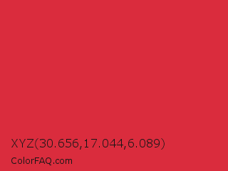XYZ 30.656,17.044,6.089 Color is a normal red color and the nearest color is Rusty Red #da2c43. Hex code #da2c3d and RGB value is rgb(218,44,61). In RGB color space, this color is composed of 85% red, 17% green, 24% blue, In CMYK color space, this color is composed of 0% cyan, 80% magenta, 72% yellow , 15% black , In HSL color space, this color has a hue angle of 354° , 70% saturation and 51% lightness.