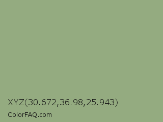 XYZ 30.672,36.98,25.943 Color is a normal green color and the nearest color is Sage #9ea587. Hex code #94ab80 and RGB value is rgb(148,171,128). In RGB color space, this color is composed of 58% red, 67% green, 50% blue, In CMYK color space, this color is composed of 13% cyan, 0% magenta, 25% yellow , 33% black , In HSL color space, this color has a hue angle of 92° , 20% saturation and 59% lightness.