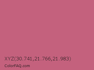 XYZ 30.741,21.766,21.983 Color is a normal rose color and the nearest color is Cinnamon Satin #cd607e. Hex code #c4617d and RGB value is rgb(196,97,125). In RGB color space, this color is composed of 77% red, 38% green, 49% blue, In CMYK color space, this color is composed of 0% cyan, 51% magenta, 36% yellow , 23% black , In HSL color space, this color has a hue angle of 343° , 46% saturation and 57% lightness.
