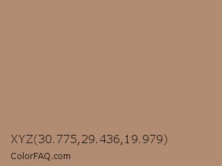 XYZ 30.775,29.436,19.979 Color is a normal orange color and the nearest color is Light Taupe #b38b6d. Hex code #b28c72 and RGB value is rgb(178,140,114). In RGB color space, this color is composed of 70% red, 55% green, 45% blue, In CMYK color space, this color is composed of 0% cyan, 21% magenta, 36% yellow , 30% black , In HSL color space, this color has a hue angle of 24° , 29% saturation and 57% lightness.