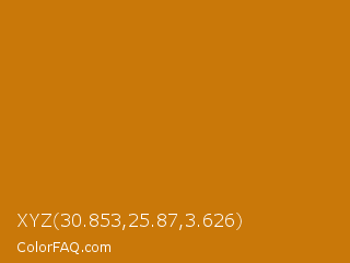 XYZ 30.853,25.87,3.626 Color is a normal orange color and the nearest color is Meteor #d07d12. Hex code #c97809 and RGB value is rgb(201,120,9). In RGB color space, this color is composed of 79% red, 47% green, 4% blue, In CMYK color space, this color is composed of 0% cyan, 40% magenta, 96% yellow , 21% black , In HSL color space, this color has a hue angle of 35° , 91% saturation and 41% lightness.