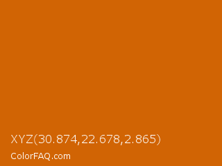 XYZ 30.874,22.678,2.865 Color is a normal orange color and the nearest color is Red Stage #d05f04. Hex code #d16404 and RGB value is rgb(209,100,4). In RGB color space, this color is composed of 82% red, 39% green, 2% blue, In CMYK color space, this color is composed of 0% cyan, 52% magenta, 98% yellow , 18% black , In HSL color space, this color has a hue angle of 28° , 96% saturation and 42% lightness.
