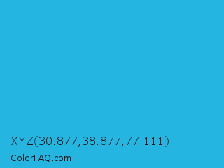 XYZ 30.877,38.877,77.111 Color is a normal blue color and the nearest color is Battery Charged Blue #1dacd6. Hex code #25b5e1 and RGB value is rgb(37,181,225). In RGB color space, this color is composed of 15% red, 71% green, 88% blue, In CMYK color space, this color is composed of 84% cyan, 20% magenta, 0% yellow , 12% black , In HSL color space, this color has a hue angle of 194° , 76% saturation and 51% lightness.