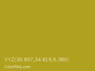 XYZ 30.897,34.819,6.389 Color is a normal yellow color and the nearest color is Lucky #af9f1c. Hex code #b0a11f and RGB value is rgb(176,161,31). In RGB color space, this color is composed of 69% red, 63% green, 12% blue, In CMYK color space, this color is composed of 0% cyan, 9% magenta, 82% yellow , 31% black , In HSL color space, this color has a hue angle of 54° , 70% saturation and 41% lightness.