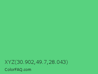 XYZ 30.902,49.7,28.043 Color is a normal green color and the nearest color is Emerald #50c878. Hex code #58d27f and RGB value is rgb(88,210,127). In RGB color space, this color is composed of 35% red, 82% green, 50% blue, In CMYK color space, this color is composed of 58% cyan, 0% magenta, 40% yellow , 18% black , In HSL color space, this color has a hue angle of 139° , 58% saturation and 58% lightness.