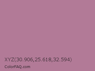XYZ 30.906,25.618,32.594 Color is a normal rose color and the nearest color is English Lavender #b48395. Hex code #b27a97 and RGB value is rgb(178,122,151). In RGB color space, this color is composed of 70% red, 48% green, 59% blue, In CMYK color space, this color is composed of 0% cyan, 31% magenta, 15% yellow , 30% black , In HSL color space, this color has a hue angle of 329° , 27% saturation and 59% lightness.