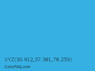 XYZ 30.912,37.381,78.259 Color is a normal blue color and the nearest color is Picton Blue #45b1e8. Hex code #36b0e3 and RGB value is rgb(54,176,227). In RGB color space, this color is composed of 21% red, 69% green, 89% blue, In CMYK color space, this color is composed of 76% cyan, 22% magenta, 0% yellow , 11% black , In HSL color space, this color has a hue angle of 198° , 76% saturation and 55% lightness.
