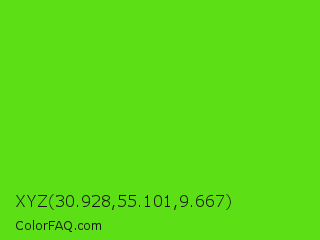 XYZ 30.928,55.101,9.667 Color is a normal green color and the nearest color is Harlequin Green #46cb18. Hex code #5cdf14 and RGB value is rgb(92,223,20). In RGB color space, this color is composed of 36% red, 87% green, 8% blue, In CMYK color space, this color is composed of 59% cyan, 0% magenta, 91% yellow , 13% black , In HSL color space, this color has a hue angle of 99° , 84% saturation and 48% lightness.