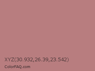 XYZ 30.932,26.39,23.542 Color is a light red color and the nearest color is Old Rose #c08081. Hex code #b87d7f and RGB value is rgb(184,125,127). In RGB color space, this color is composed of 72% red, 49% green, 50% blue, In CMYK color space, this color is composed of 0% cyan, 32% magenta, 31% yellow , 28% black , In HSL color space, this color has a hue angle of 358° , 29% saturation and 61% lightness.
