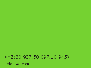 XYZ 30.937,50.097,10.945 Color is a normal green color and the nearest color is Lima #76bd17. Hex code #75d231 and RGB value is rgb(117,210,49). In RGB color space, this color is composed of 46% red, 82% green, 19% blue, In CMYK color space, this color is composed of 44% cyan, 0% magenta, 77% yellow , 18% black , In HSL color space, this color has a hue angle of 95° , 64% saturation and 51% lightness.