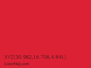 XYZ 30.982,16.708,4.841 Color is a normal red color and the nearest color is Alizarin Crimson #e32636. Hex code #dd2134 and RGB value is rgb(221,33,52). In RGB color space, this color is composed of 87% red, 13% green, 20% blue, In CMYK color space, this color is composed of 0% cyan, 85% magenta, 76% yellow , 13% black , In HSL color space, this color has a hue angle of 354° , 74% saturation and 50% lightness.