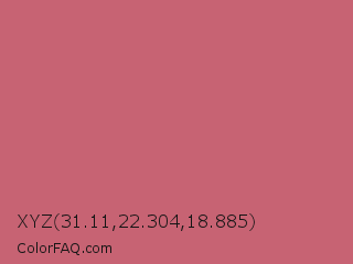 XYZ 31.11,22.304,18.885 Color is a normal red color and the nearest color is Cinnamon Satin #cd607e. Hex code #c76373 and RGB value is rgb(199,99,115). In RGB color space, this color is composed of 78% red, 39% green, 45% blue, In CMYK color space, this color is composed of 0% cyan, 50% magenta, 42% yellow , 22% black , In HSL color space, this color has a hue angle of 350° , 47% saturation and 58% lightness.