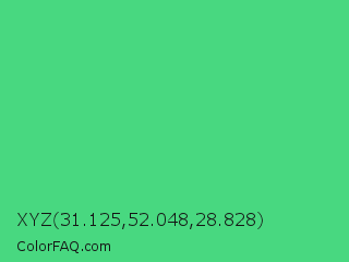 XYZ 31.125,52.048,28.828 Color is a normal green color and the nearest color is Emerald #50c878. Hex code #48d880 and RGB value is rgb(72,216,128). In RGB color space, this color is composed of 28% red, 85% green, 50% blue, In CMYK color space, this color is composed of 67% cyan, 0% magenta, 41% yellow , 15% black , In HSL color space, this color has a hue angle of 143° , 65% saturation and 56% lightness.