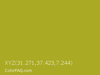 XYZ 31.271,37.423,7.244 Color is a normal yellow color and the nearest color is Citron #9fa91f. Hex code #aaaa24 and RGB value is rgb(170,170,36). In RGB color space, this color is composed of 67% red, 67% green, 14% blue, In CMYK color space, this color is composed of 0% cyan, 0% magenta, 79% yellow , 33% black , In HSL color space, this color has a hue angle of 60° , 65% saturation and 40% lightness.