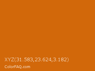 XYZ 31.583,23.624,3.182 Color is a normal orange color and the nearest color is Red Stage #d05f04. Hex code #d2680a and RGB value is rgb(210,104,10). In RGB color space, this color is composed of 82% red, 41% green, 4% blue, In CMYK color space, this color is composed of 0% cyan, 50% magenta, 95% yellow , 18% black , In HSL color space, this color has a hue angle of 28° , 91% saturation and 43% lightness.