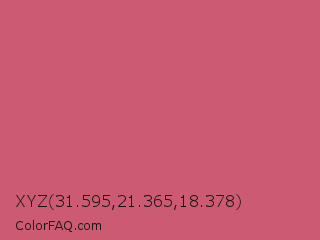XYZ 31.595,21.365,18.378 Color is a normal red color and the nearest color is Cinnamon Satin #cd607e. Hex code #cc5a72 and RGB value is rgb(204,90,114). In RGB color space, this color is composed of 80% red, 35% green, 45% blue, In CMYK color space, this color is composed of 0% cyan, 56% magenta, 44% yellow , 20% black , In HSL color space, this color has a hue angle of 347° , 53% saturation and 58% lightness.