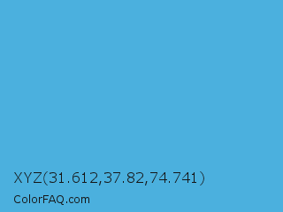 XYZ 31.612,37.82,74.741 Color is a normal blue color and the nearest color is Picton Blue #45b1e8. Hex code #4bb0de and RGB value is rgb(75,176,222). In RGB color space, this color is composed of 29% red, 69% green, 87% blue, In CMYK color space, this color is composed of 66% cyan, 21% magenta, 0% yellow , 13% black , In HSL color space, this color has a hue angle of 199° , 69% saturation and 58% lightness.
