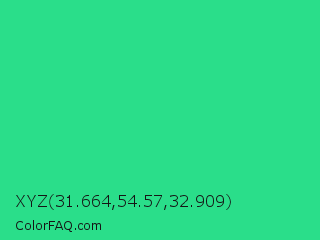 XYZ 31.664,54.57,32.909 Color is a normal green color and the nearest color is Shamrock #33cc99. Hex code #2ade8a and RGB value is rgb(42,222,138). In RGB color space, this color is composed of 16% red, 87% green, 54% blue, In CMYK color space, this color is composed of 81% cyan, 0% magenta, 38% yellow , 13% black , In HSL color space, this color has a hue angle of 152° , 73% saturation and 52% lightness.