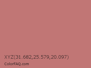 XYZ 31.682,25.579,20.097 Color is a light red color and the nearest color is Contessa #c6726b. Hex code #c17675 and RGB value is rgb(193,118,117). In RGB color space, this color is composed of 76% red, 46% green, 46% blue, In CMYK color space, this color is composed of 0% cyan, 39% magenta, 39% yellow , 24% black , In HSL color space, this color has a hue angle of 1° , 38% saturation and 61% lightness.