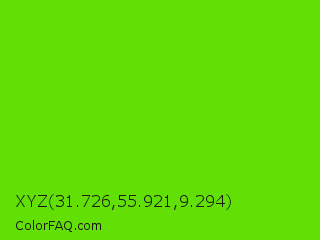 XYZ 31.726,55.921,9.294 Color is a normal green color and the nearest color is Bright Green #66ff00. Hex code #62e006 and RGB value is rgb(98,224,6). In RGB color space, this color is composed of 38% red, 88% green, 2% blue, In CMYK color space, this color is composed of 56% cyan, 0% magenta, 97% yellow , 12% black , In HSL color space, this color has a hue angle of 95° , 95% saturation and 45% lightness.