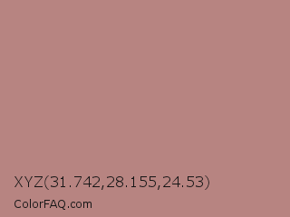 XYZ 31.742,28.155,24.53 Color is a light red color and the nearest color is Brandy Rose #bb8983. Hex code #b78481 and RGB value is rgb(183,132,129). In RGB color space, this color is composed of 72% red, 52% green, 51% blue, In CMYK color space, this color is composed of 0% cyan, 28% magenta, 30% yellow , 28% black , In HSL color space, this color has a hue angle of 3° , 27% saturation and 61% lightness.